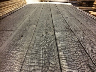 Het resultaat is een donkergekleurde plank met een geblakerde textuur. De planken worden vervolgens schoongemaakt en geolied om het hout te beschermen en de kleur te behouden. Het resulterende oppervlak heeft een unieke uitstraling die doet denken aan verweerd hout, maar dan met een moderne twist.